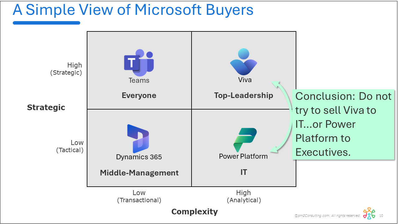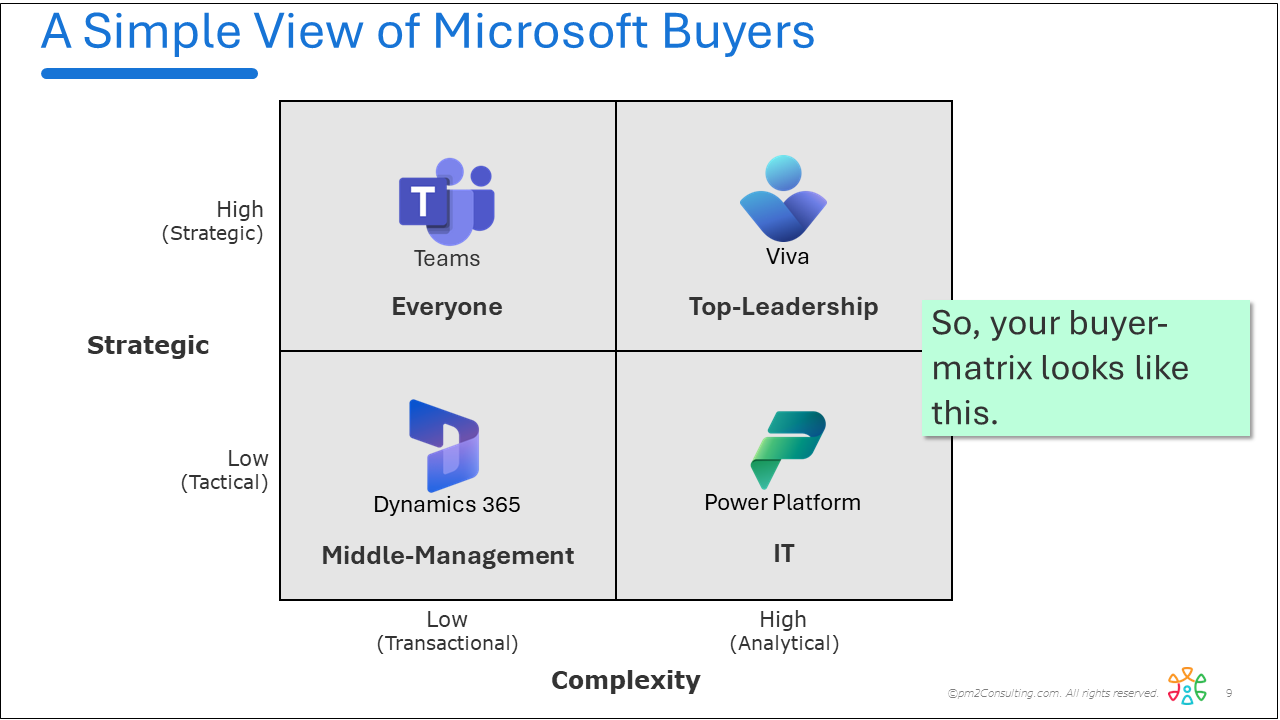 Microsoft has a matrix of software tools - and your Accounts have a matrix of needs - see how they map into each other.